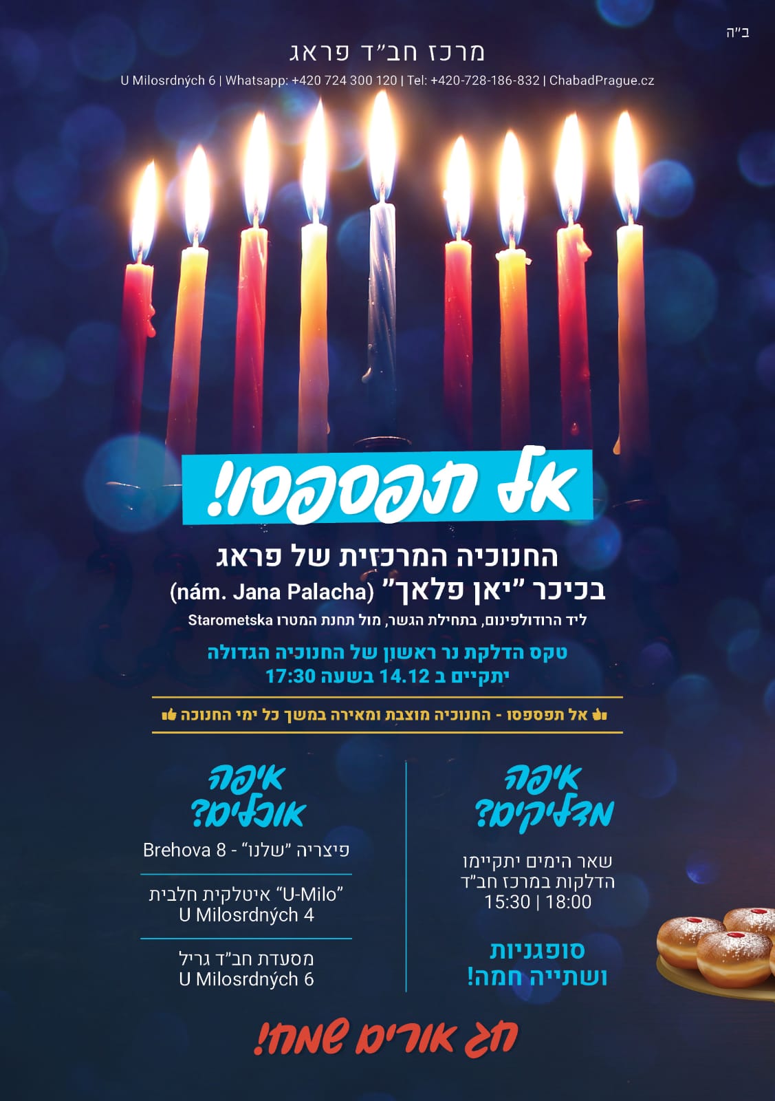 If you’ve found a malfunction or have ideas for improvement, we’ll be happy to hear from you. You can reach out to the website’s operators by using the following email info@chabadprague.cz