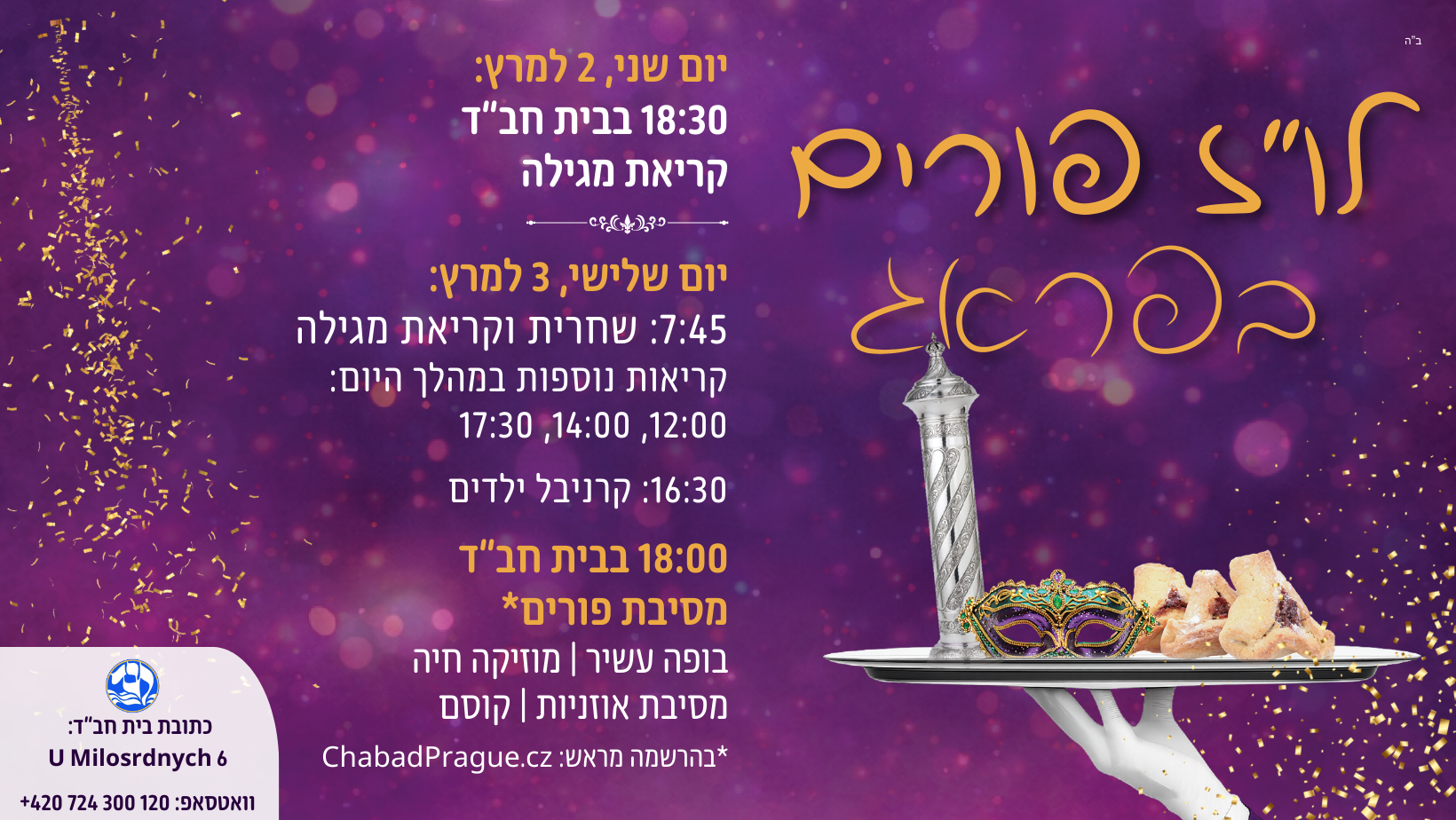 Despite our very best efforts to allow anybody to adjust the website to their needs, there may still be pages or sections that are not fully accessible, are in the process of becoming accessible, or are lacking an adequate technological solution to make them accessible. Still, we are continually improving our accessibility, adding, updating and improving its options and features, and developing and adopting new technologies. All this is meant to reach the optimal level of accessibility, following technological advancements. For any assistance, please reach out to info@chabadprague.cz